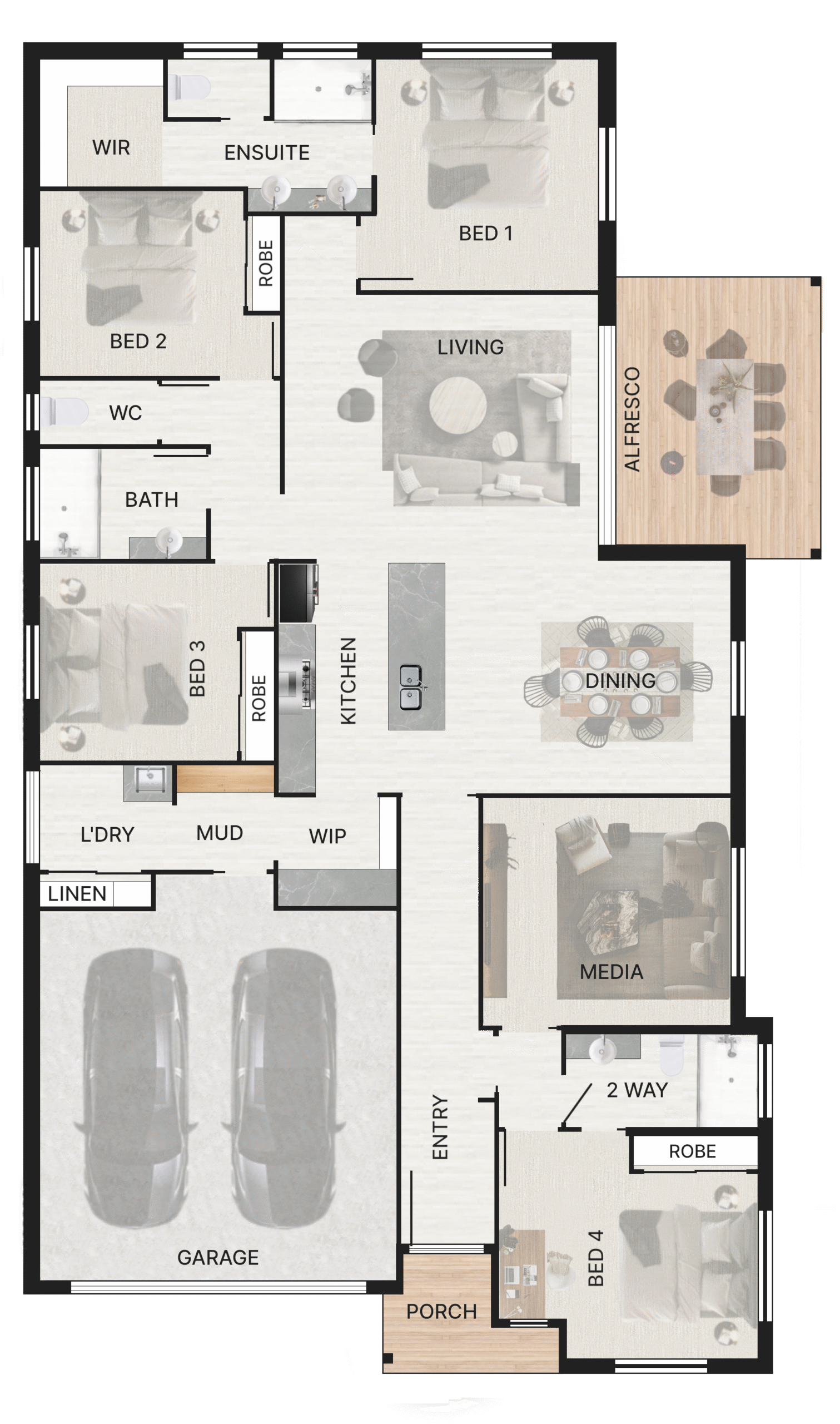 Designed with family living in mind, the home offers four spacious bedrooms, including a luxurious master suite with its own ensuite and walk-in robe, creating the perfect private retreat.
